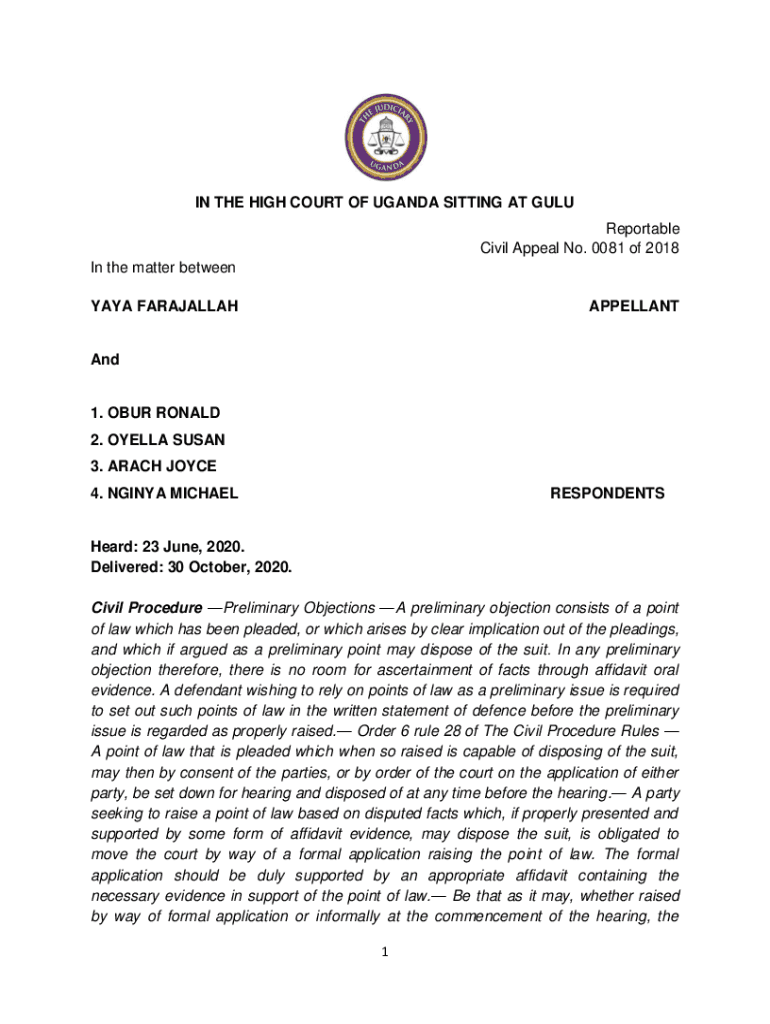 Get the free Yaya v Obur and Ors (Civil Appeal 81 of 2018) 2020 UGHC 165 (30 ...