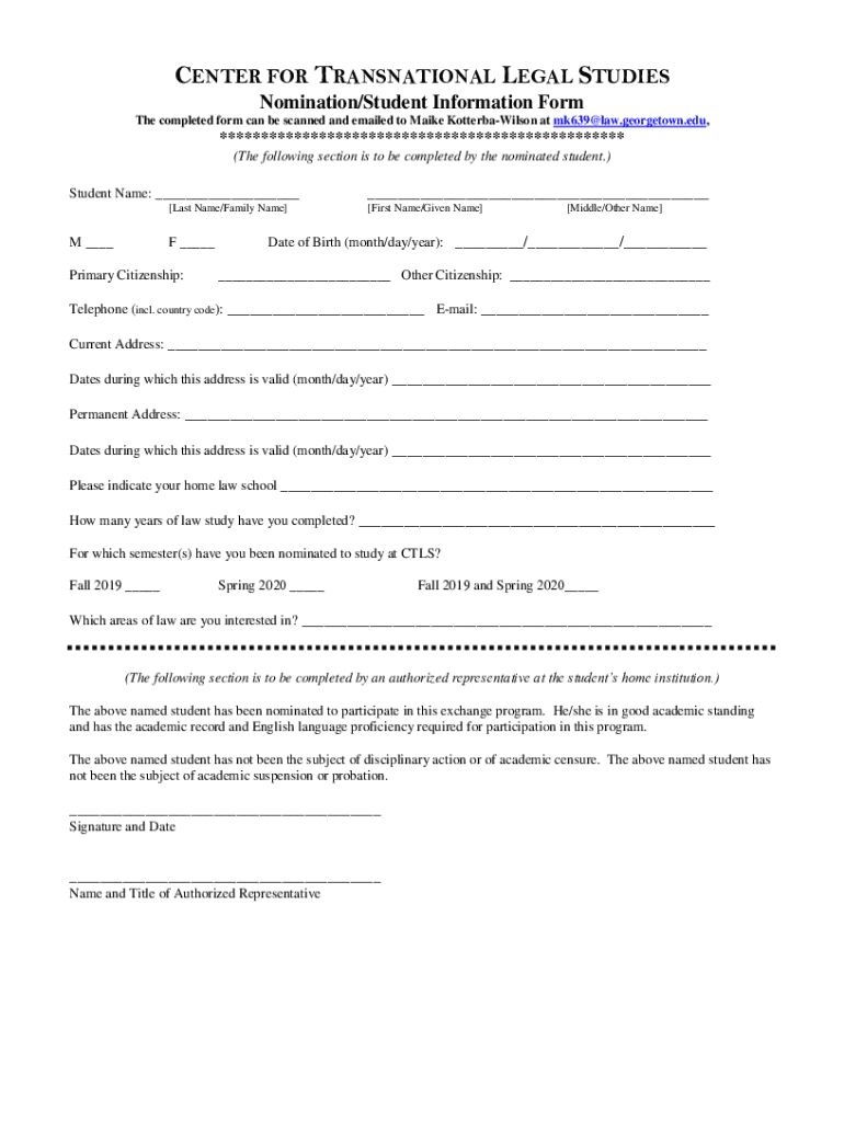 Get the free Nomination/Student Information Form - Georgetown Law