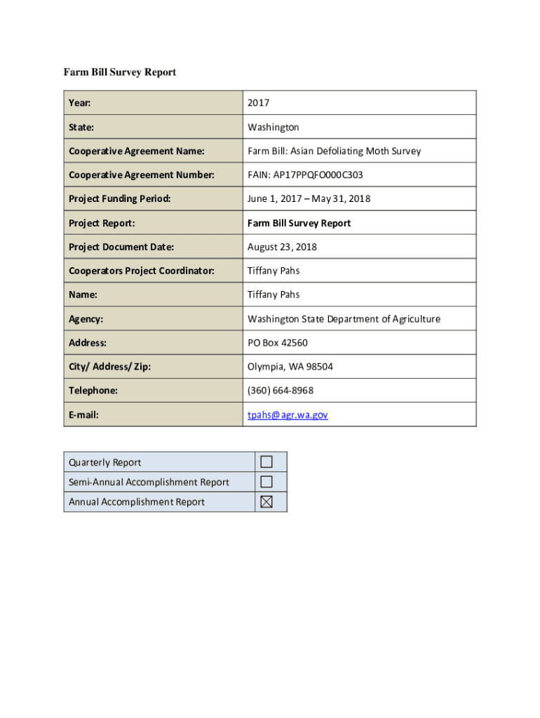 Year:2017State:WashingtonCooperative Agreement Name:Farm Bill: Asian Defoliating Moth SurveyCooperative Agreement Number:FAIN: AP17PPQFO000C303Project Funding Period:June 1,