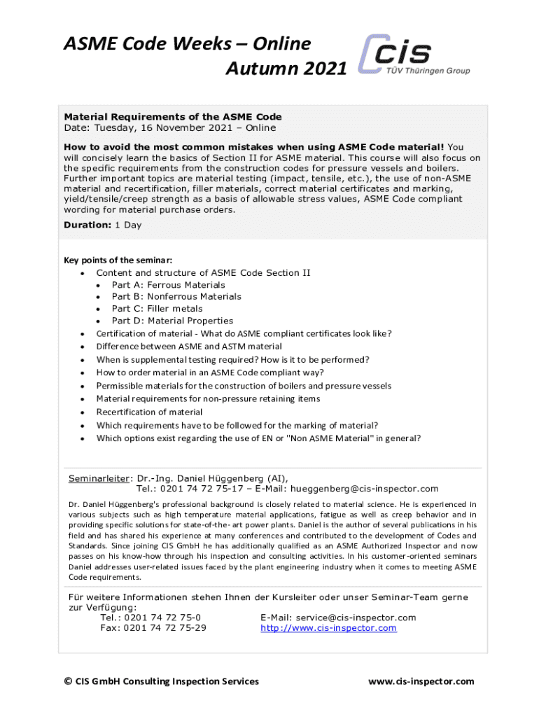 Get the free www.cis-inspector.comdownloadsSeminareRegistration Services ASME Code Essentials ASM...