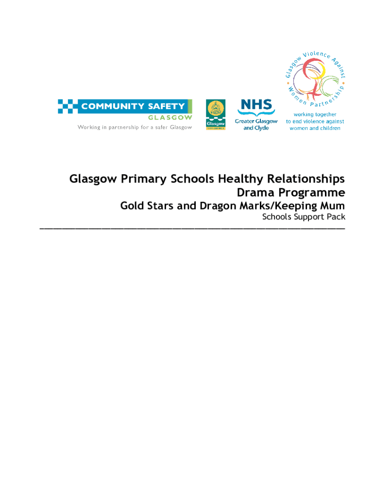 Glasgow Primary Schools Healthy Relationships Drama Program Gold Stars and Dragon Marks/Keeping Mum Schools Support Pack ___ContentsWelcome Letter3Mutual Responsibilities Document (Includes link to