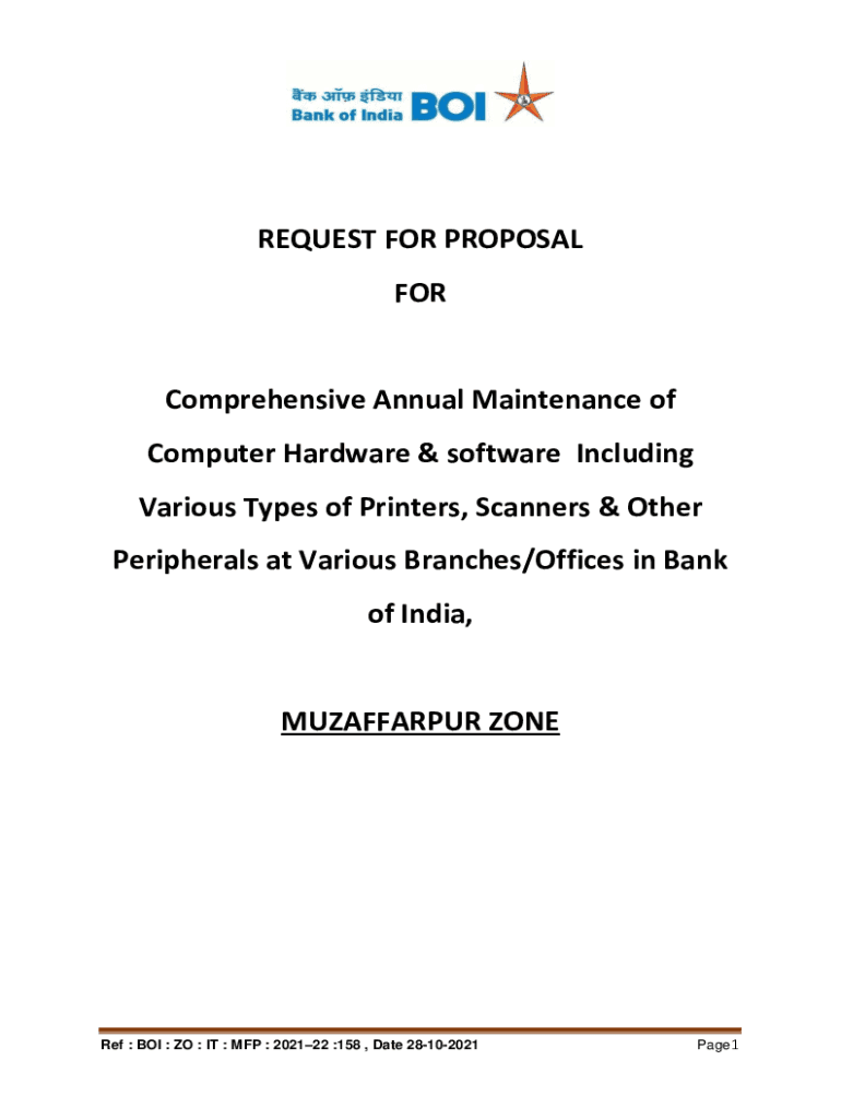 Get the free REQUEST FOR PROPOSAL FOR Comprehensive Annual Maintenance of Computer ...
