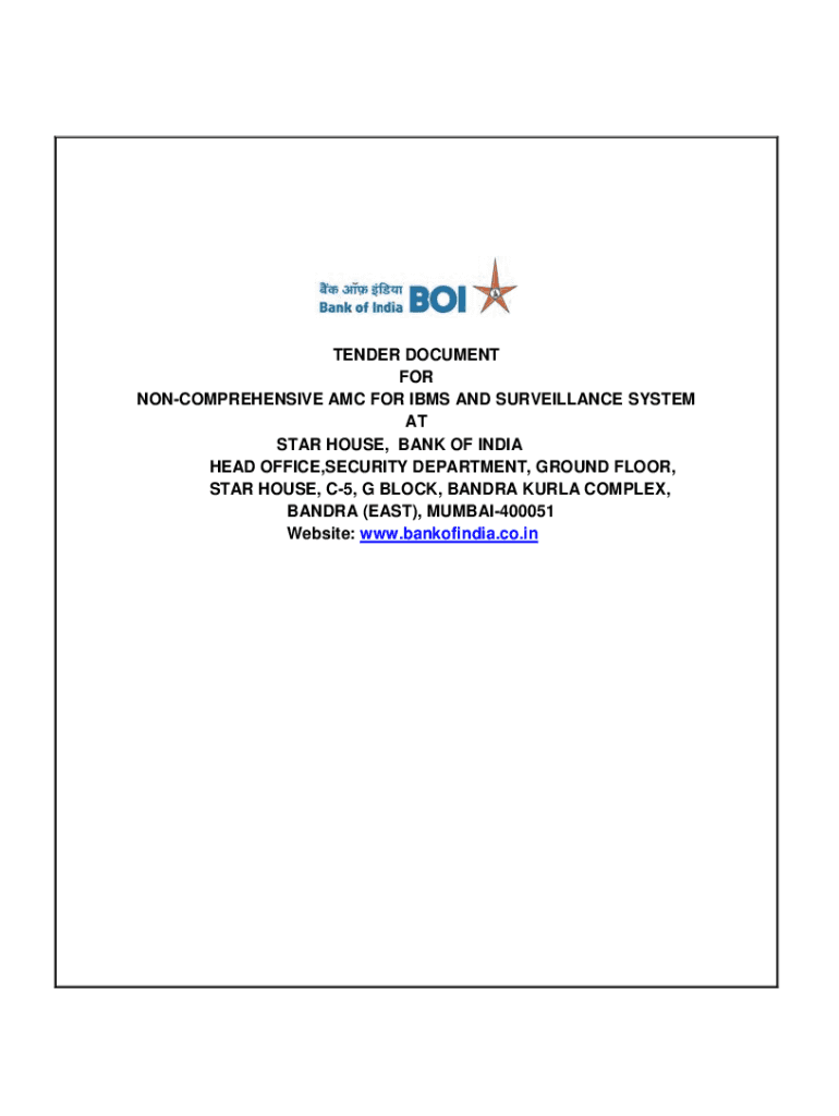 Get the free TENDER DOCUMENT FOR NON-COMPREHENSIVE AMC FOR IBMS AND SURVEILLANCE ...