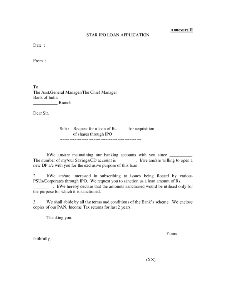 Get the free Annexure II STAR IPO LOAN APPLICATION To Bank of India