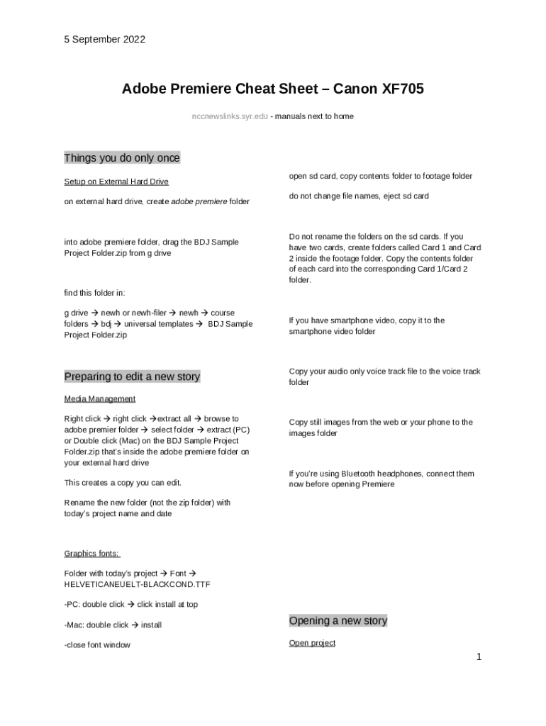 What is Adobe Premiere Cheat SheetCanon XF705 - nccnewslinks.syr.edu Form?