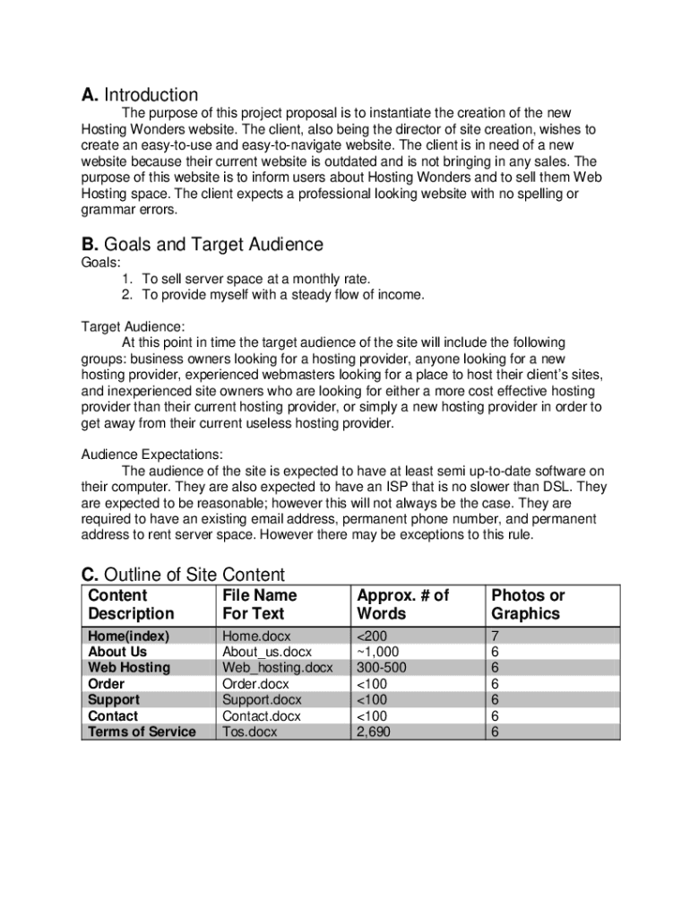 A. Introduction The purpose of this project proposal is to instantiate the creation of the new Hosting Wonders website. The client, also being the director of site creation, wishes to create an espoused