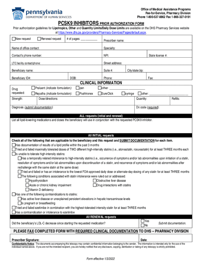 Office of Medical Assistance Programs FeeforService, Pharmacy Division Phone 18005378862 Fax 18663270191PCSK9 INHIBITORS PRIOR AUTHORIZATION Formation authorization guidelines for Isotropic, Other