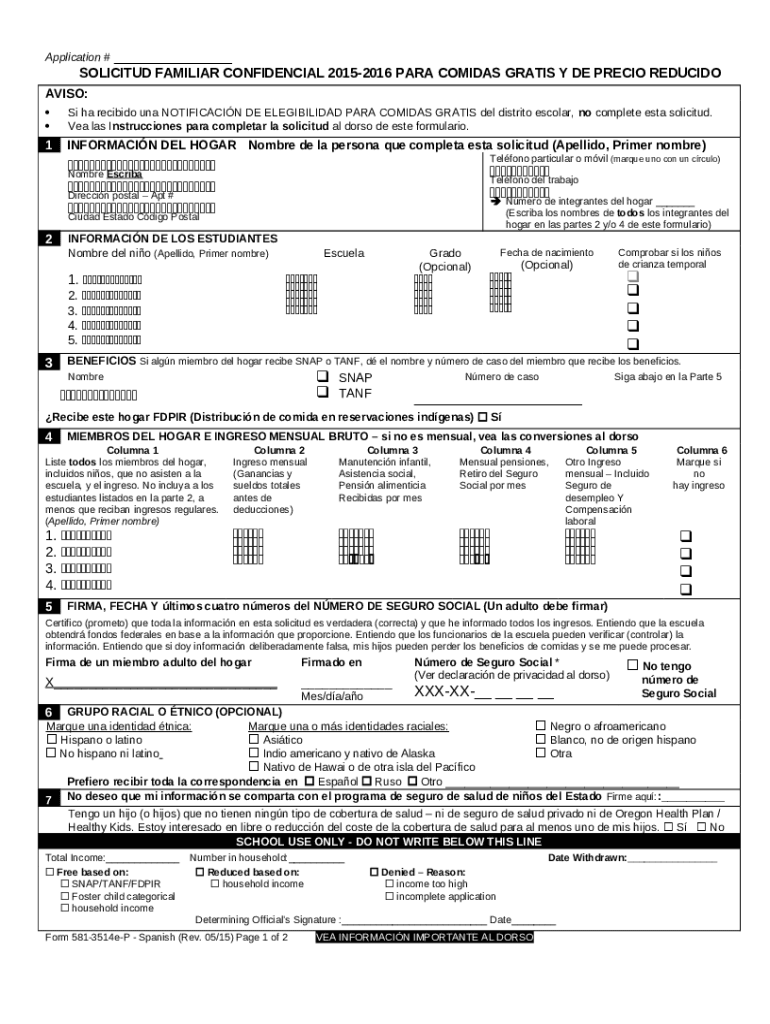 Instructions for the Nutrition Services / Free & Reduced-Price Meal Ination form