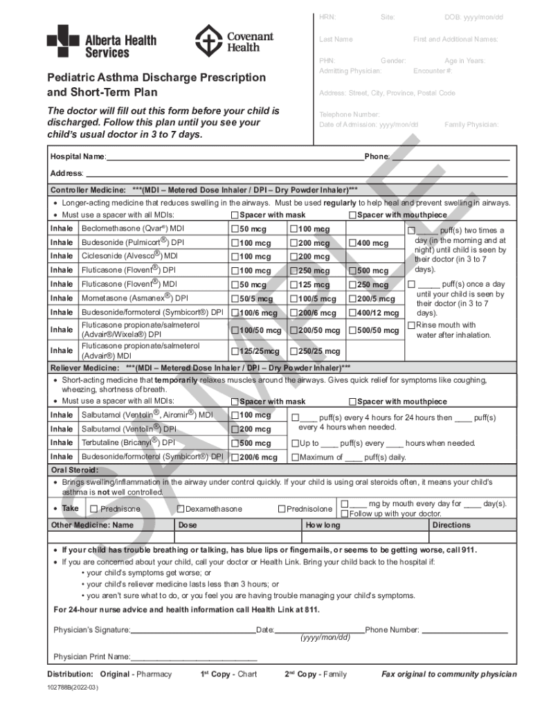 Get the free Pediatric Asthma Discharge Prescription and Short-Term Plan-SAMPLE. Pediatric Asthma...