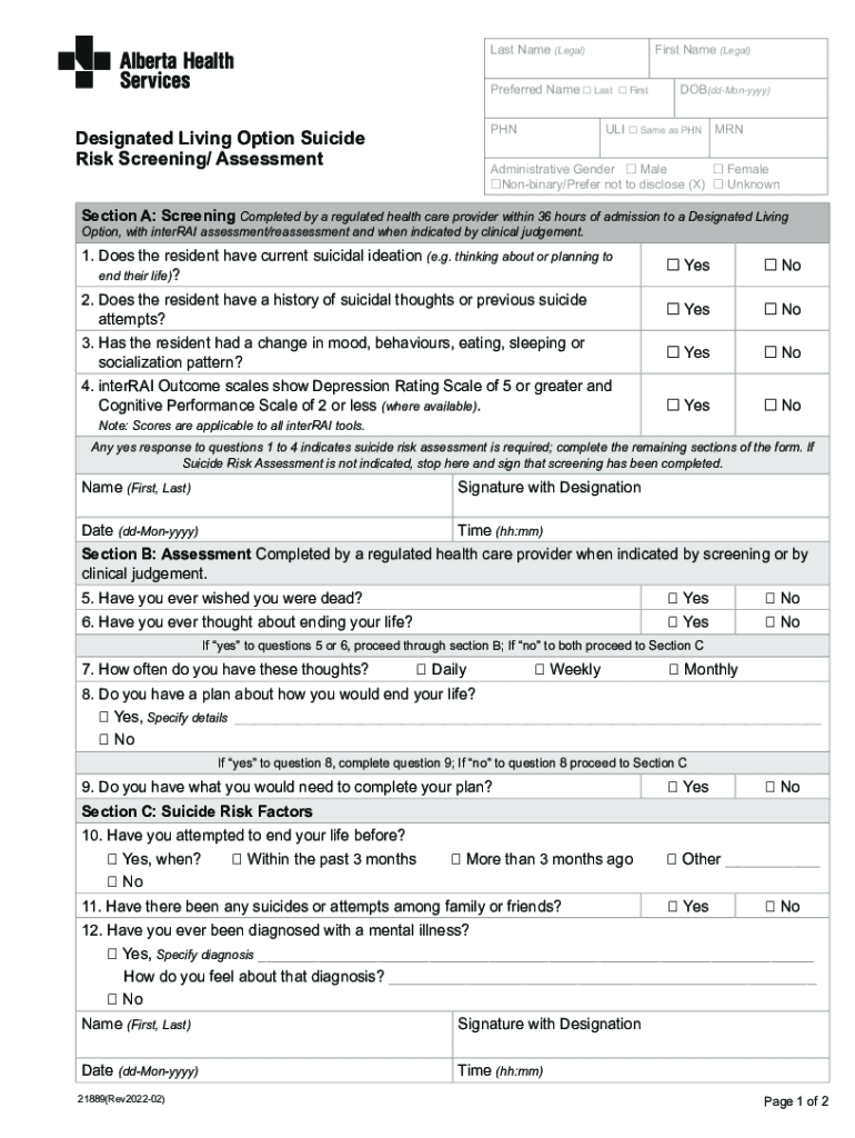 Get the free Designated Living Option Suicide - Alberta Health Services