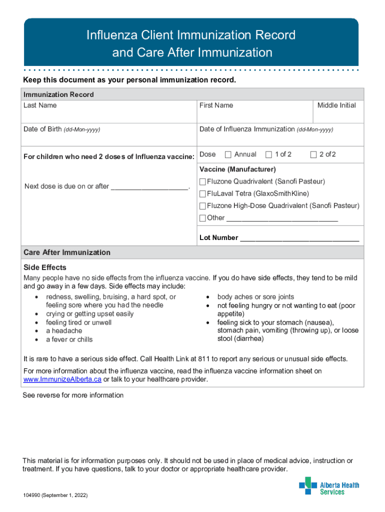 Keep a copy of the aftercare form with the immunization record for future reference.