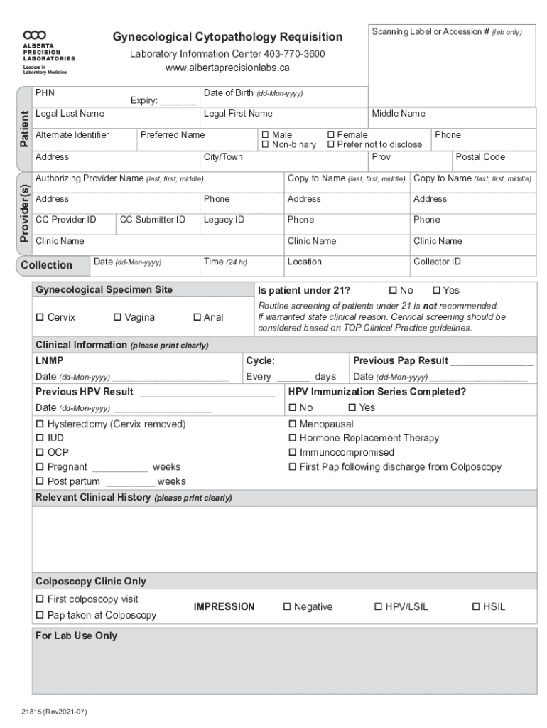 Get the free Gynecological Cytopathology Requisition - Alberta Health Services
