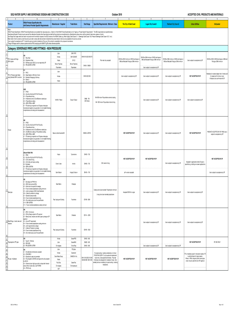 with Service Provider Specific Requirements October 2019ACCEPTED CIVIL PRODUCTS AND MATERIALSCDEFGHIJKManufacturer