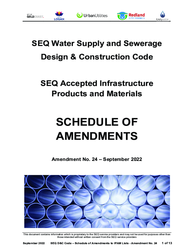SEQ Water Supply and Sewerage Design & Construction Code SEQ Accepted Infrastructure Products and MaterialsSCHEDULE OF AMENDMENTS Amendment No. 24 September 2022This document contains information