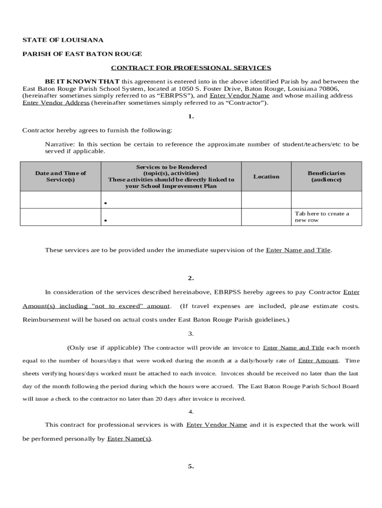 Template STATE OF LOUISIANA PARISH OF EAST BATON ROUGE CONTRACT FOR PROFESSIONAL ... instructions