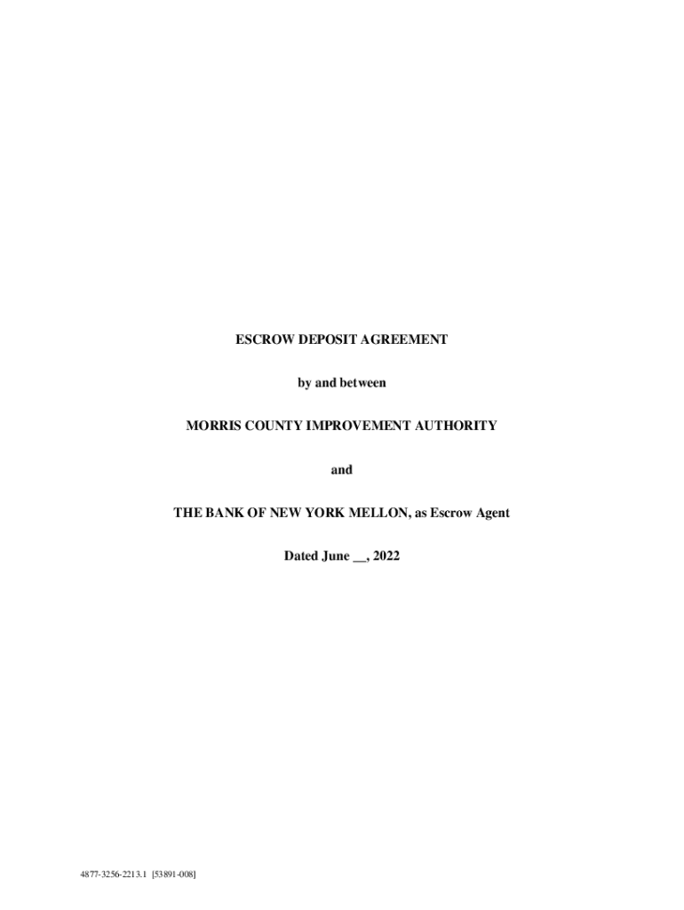 ESCROW DEPOSIT AGREEMENT by and between MORRIS COUNTY IMPROVEMENT AUTHORITY and THE BANK OF NEW YORK MELLON, as Escrow Agent Dated June __, 2022487732562213.1 [53891008]ESCROW DEPOSIT AGREEMENT THIS
