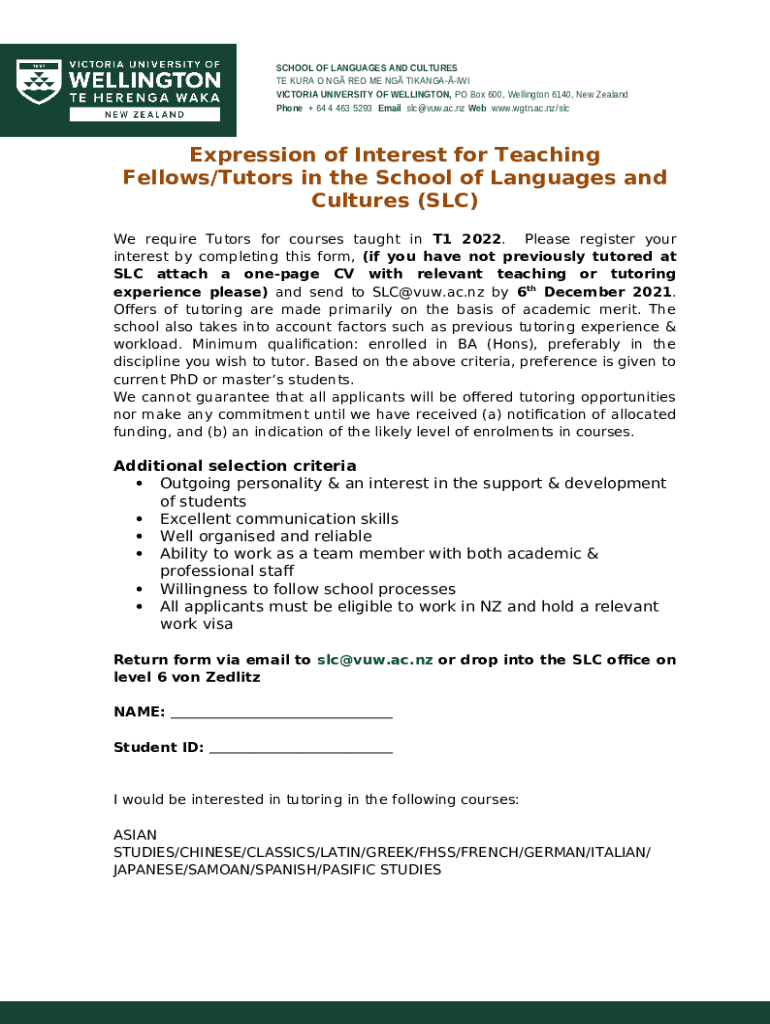 What is Expression of Interest (EOI): Casual Teacher/Tutor - School of ... Form?