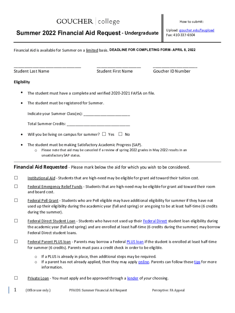 Fax: 4103376504COMPLETING FORMFinancial Aid is available for Summer on a limited basis.