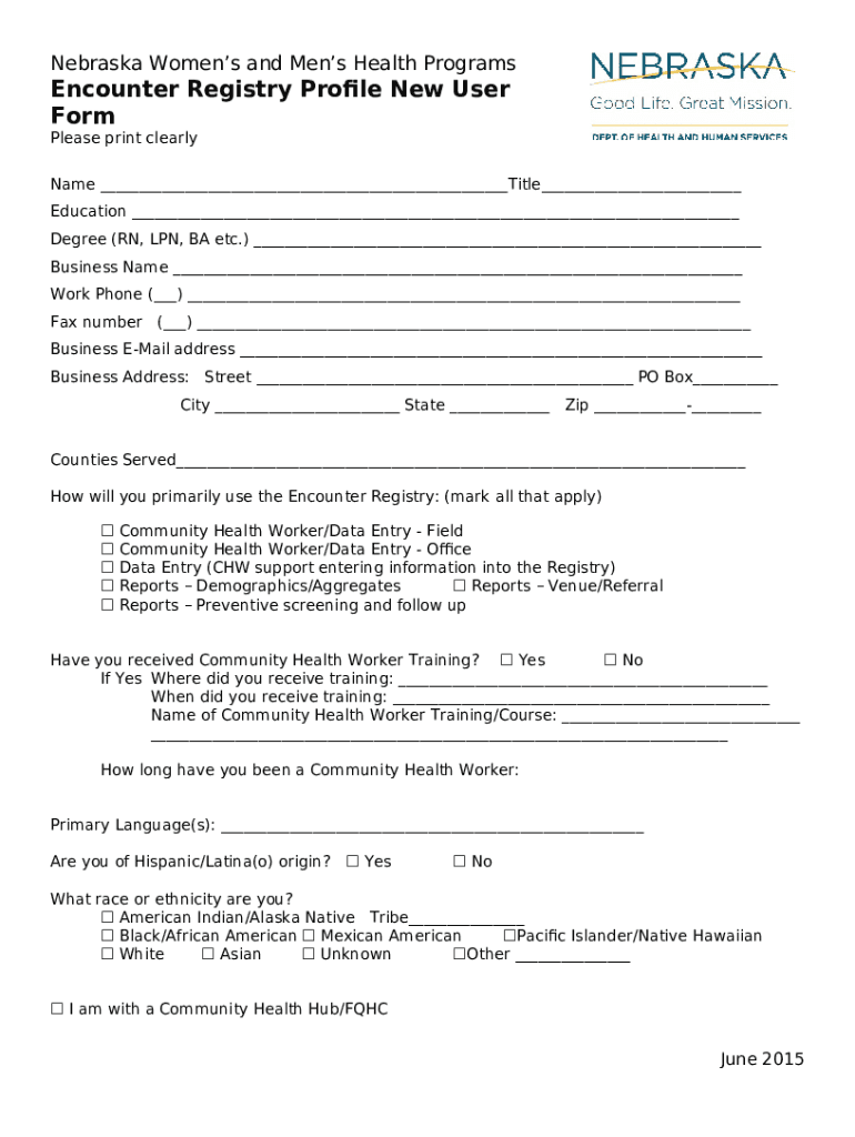 How to fill out Encounter Registry User Profile - Nebraska Department of ... - dhhs ne
