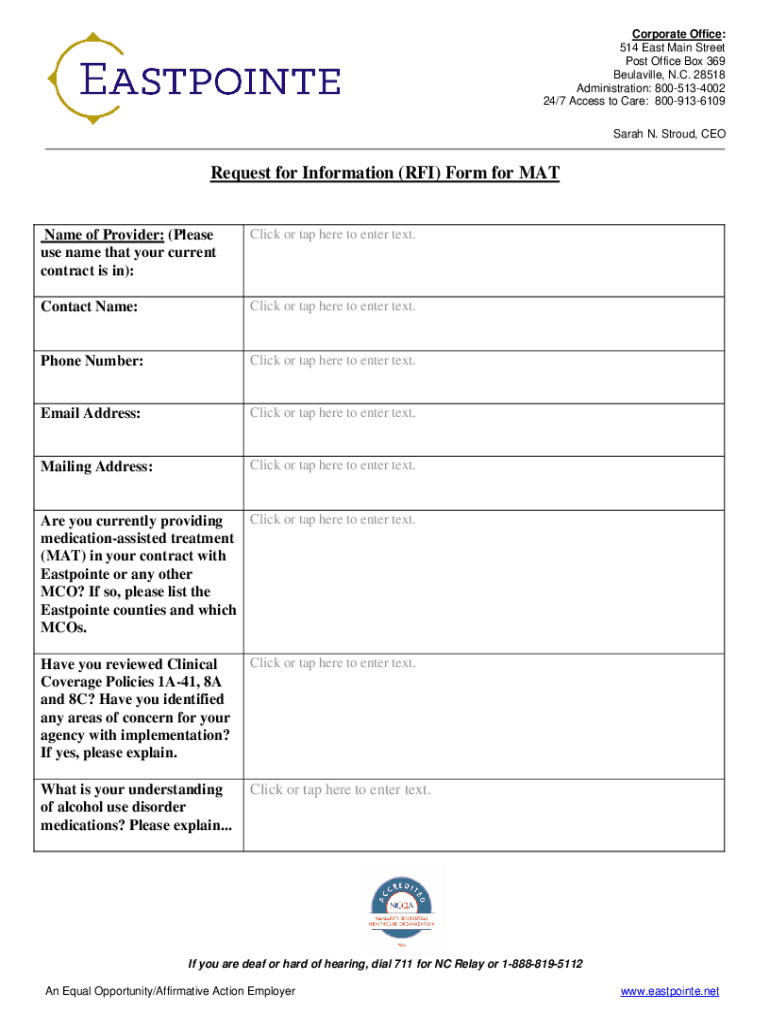 Get the free Request for Information (RFI) Form for MAT - mco.eastpointe.net