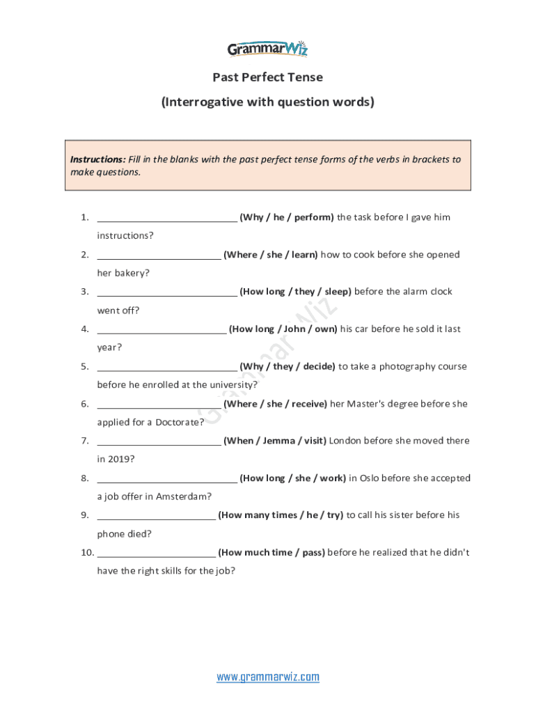 Email, fax, or share your wwwgrammarwizcompast-perfect-tense-questionspast perfect tense questions form via URL. You can also download, print, or export forms to your preferred cloud storage service.