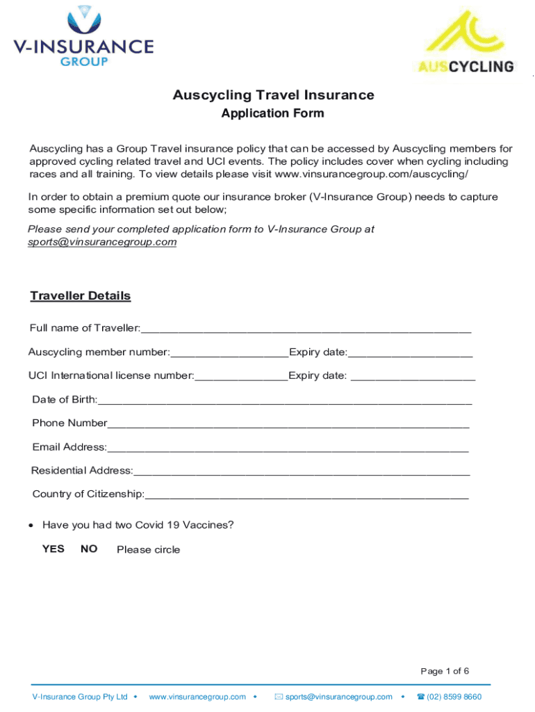 Auscycling Travel Insurance is not the form you're looking for?Search for another form here.