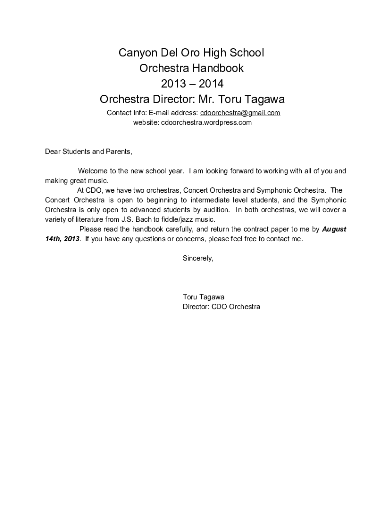 Canyon Del Or o High School Or chest r a Handbook 2013 2014 Or chest r a Di r etc or : Mr. Tor u Tarawa Cont act I NF o: E mail address: Door chest r Akamai l. Com webs t e: Door chest r a. for Dr
