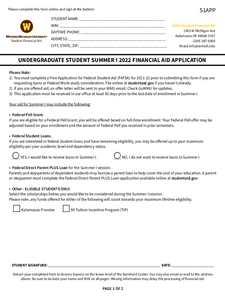 Get the free UNDERGRADUATE STUDENT SUMMER I 2022 FINANCIAL AID