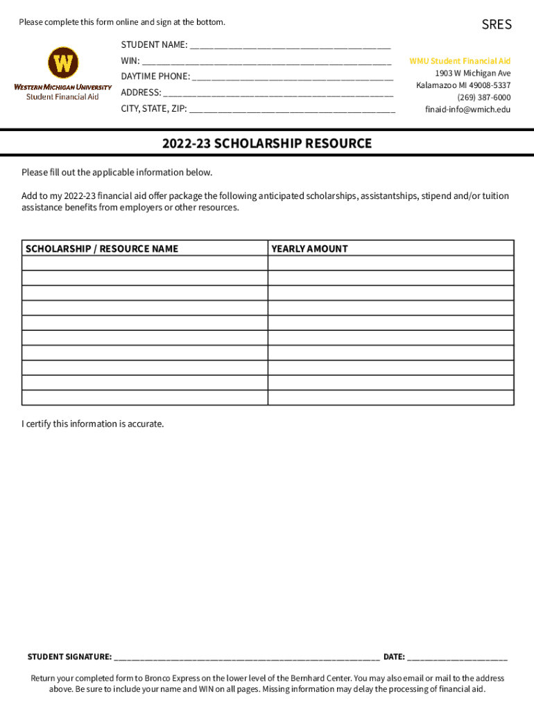 Please this form online and then sign print at the end bottom. Please complete this form online, sign using blue or black ink.SRESSTUDENT NAME: ___ WIN: ___ DAYTIME PHONE: ___ ADDRESS: ___ CITY, STATE,
