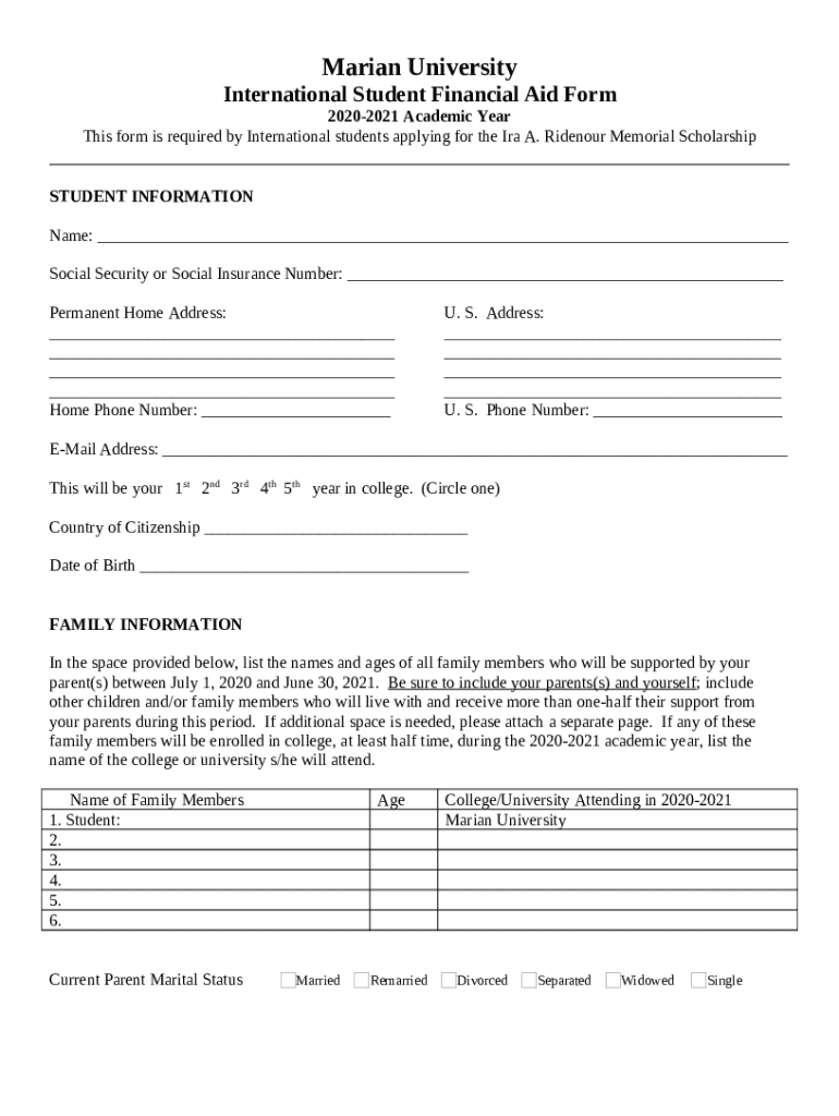 Instructions for the www.marian.edudocsdefault-sourceFinancial Verification for Academic Year 2021-2022 form