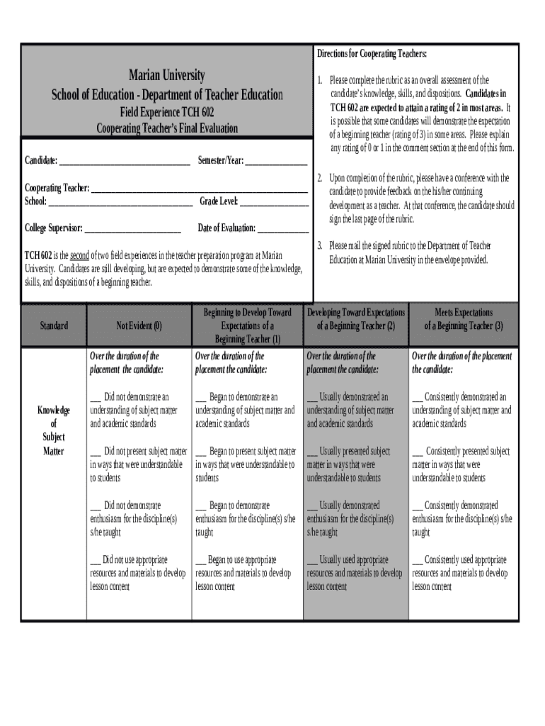 - Find the my.marianuniversity.eduschoolssoeDirections for Cooperating Teachers: Marian University Please ... form in PDFfiller’s filebase.