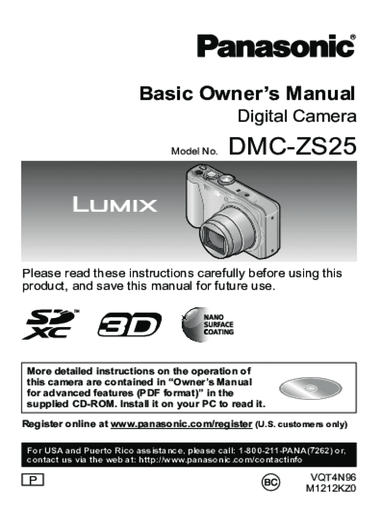 Basic Owners Manual Digital Cameramen No.DMCZS25Please read these instructions carefully before using this product, and save this manual for future use. More detailed instructions on the operation