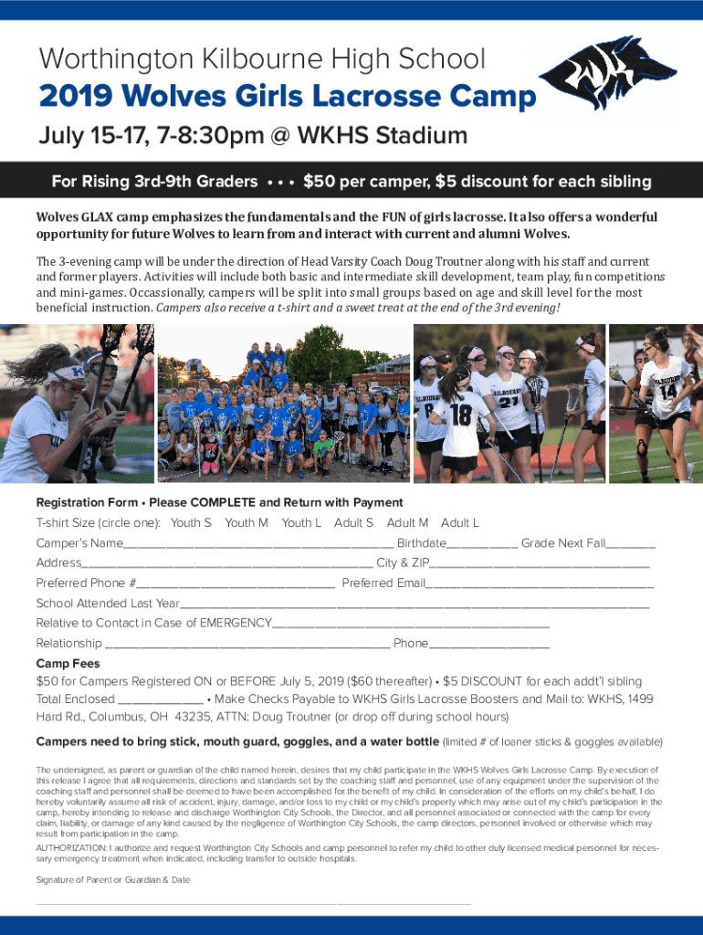 Worthington Melbourne High School2019 Wolves Girls Lacrosse Camp July 1517, 78:30pm @ KHS Stadium For Rising 3rd9th Graders $50 per camper, $5 discount for each sibling Wolves FLAX camp emphasizes
