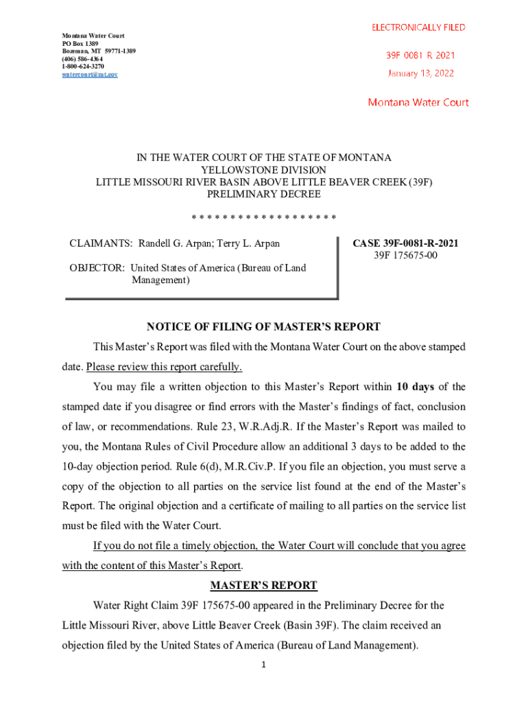 Get the free NOTICE OF FILING OF MASTERS REPORT 10 days - Montana - courts mt