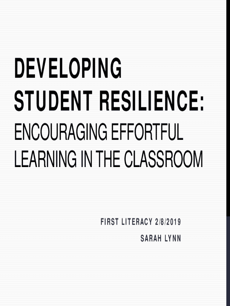 DEVELOPING STUDENT RESILIENCE: ENCOURAGING EFFORTFUL LEARNING IN THE CLASSROOM FIRST LITERACY 2/8/2019 SARAH LYNNTEACHER SHARE Is there anything you tried in your classroom and would like to share