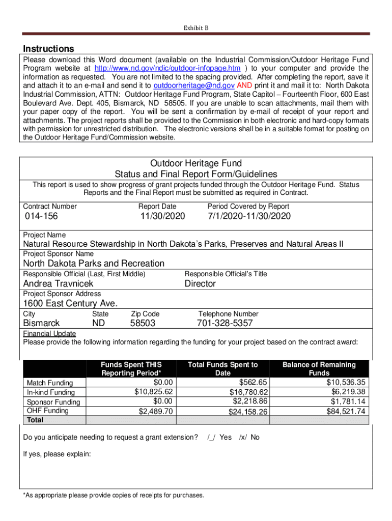 Exhibit Instructions Please download this Word document (available on the Industrial Commission/Outdoor Heritage Fund Program website at http://www.nd.gov/ndic/outdoorinfopage.htm) to your computer