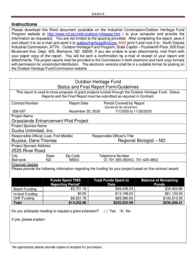 Exhibit BInstructionsPlease download this Word document (available on the Industrial Commission/Outdoor Heritage Fund Program website at http://www.nd.gov/ndic/outdoorinfopage.htm) to your computer