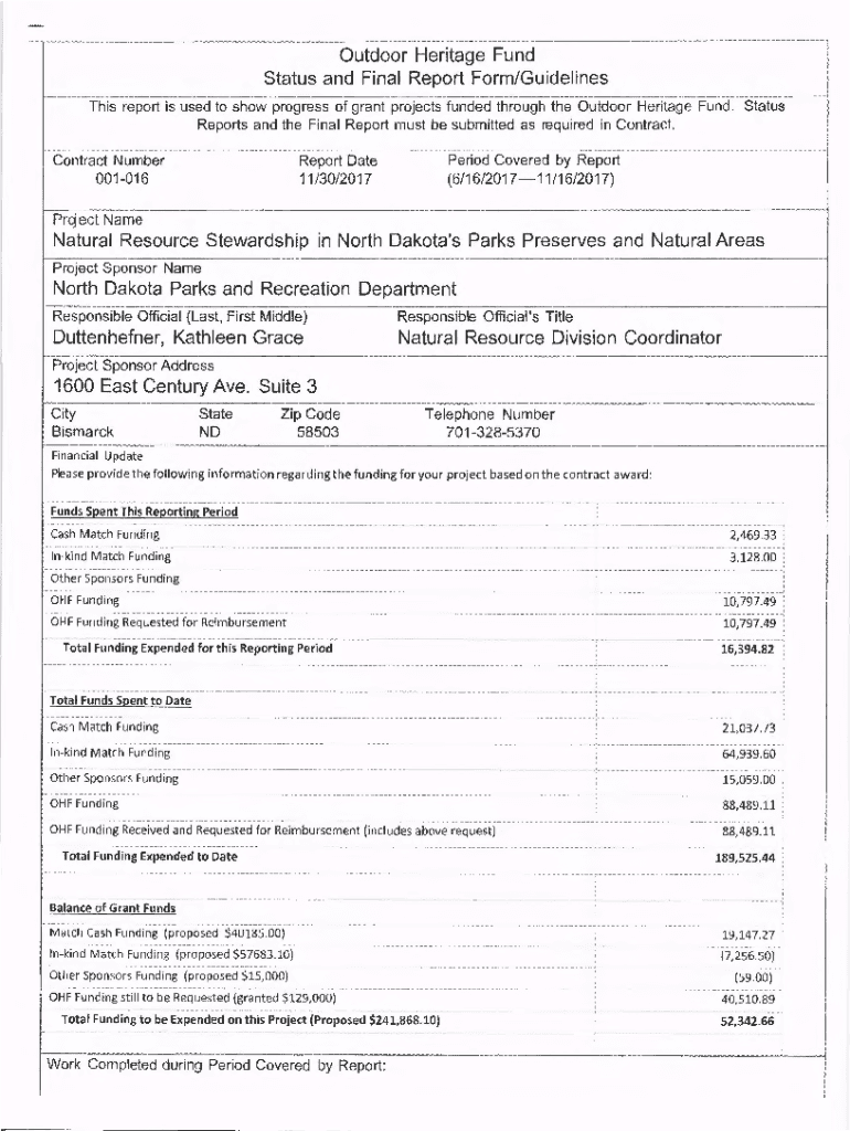 Get the free www.nd.govndicoutOutdoor Heritage Fund Status and Final Report Form/Guidelines ND