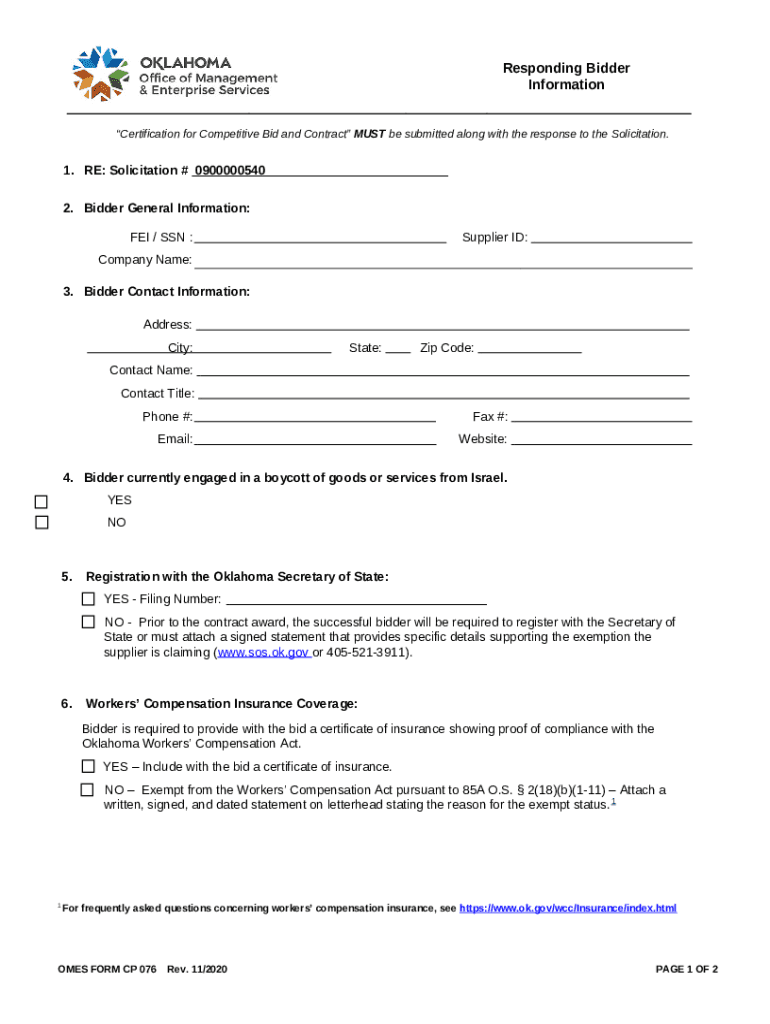 PDF Responding Bidder Ination template instructions