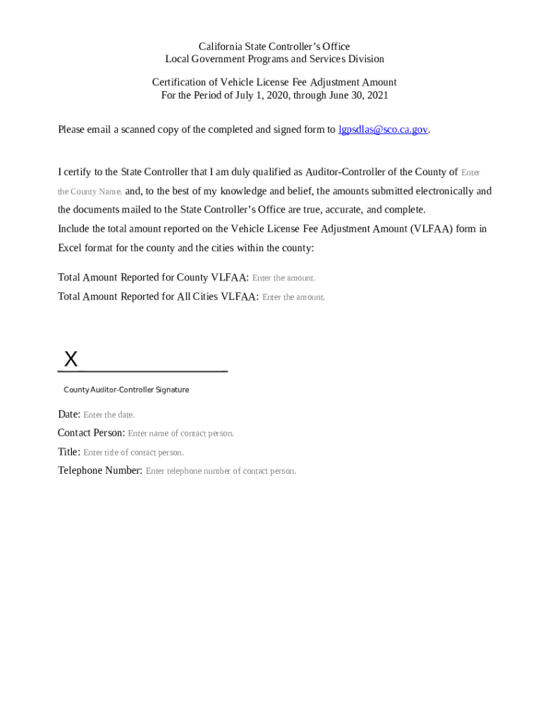 How to fill Vhehicle License Fee Adjustment Amount word template