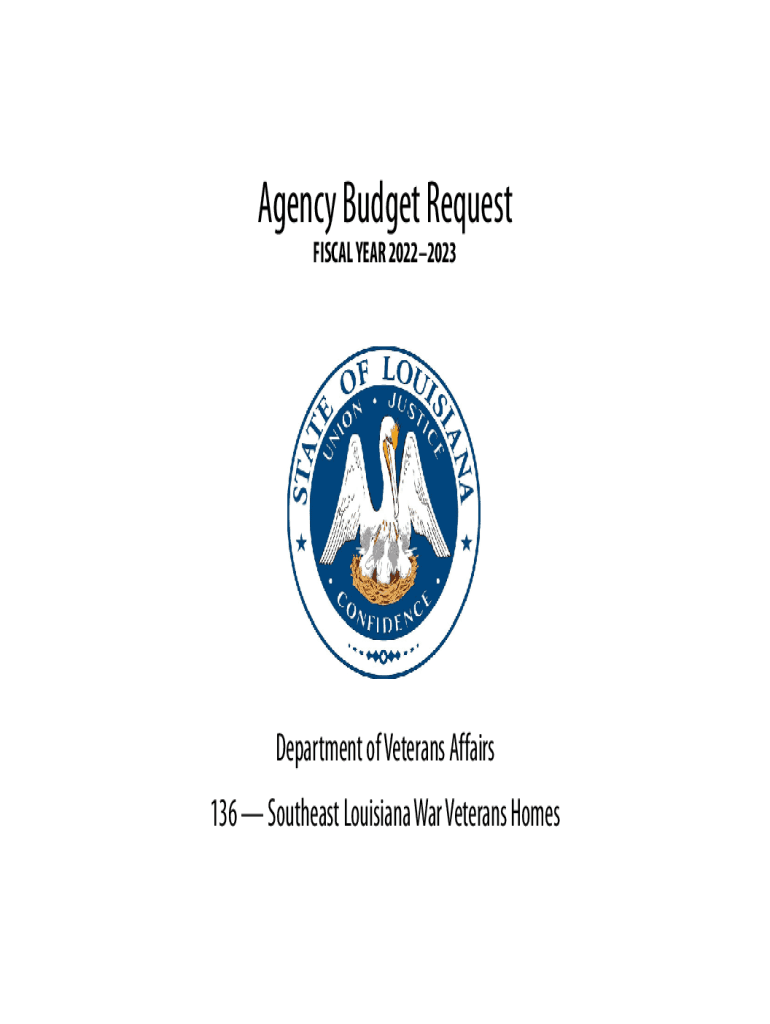 Agency Budget Request FISCAL YEAR 20222023Department of Veterans Affairs 136 Southeast Louisiana War Veterans Homestays page has been intentionally left blankSignature Page ..............................................................................................................................................................................................................1