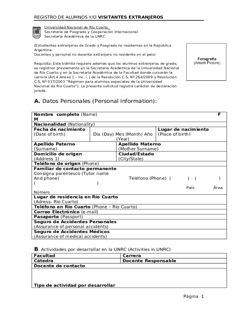 What is Universidad Nacional de Ro Cuarto - UNRC Form?