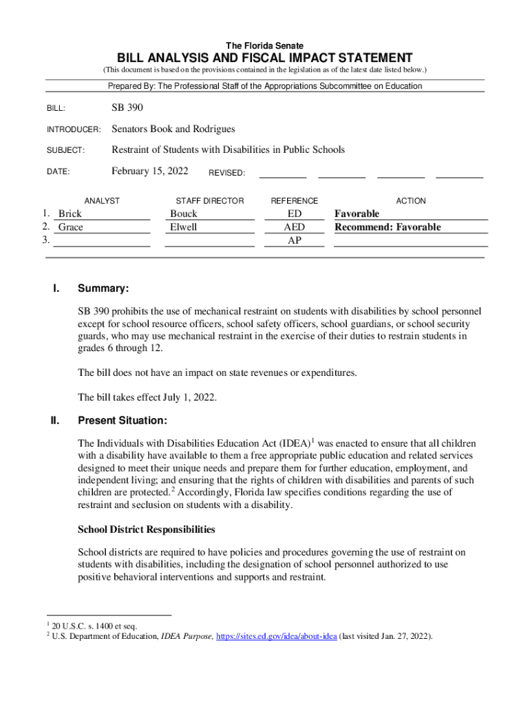 The Florida Senatorial ANALYSIS AND FISCAL IMPACT STATEMENT