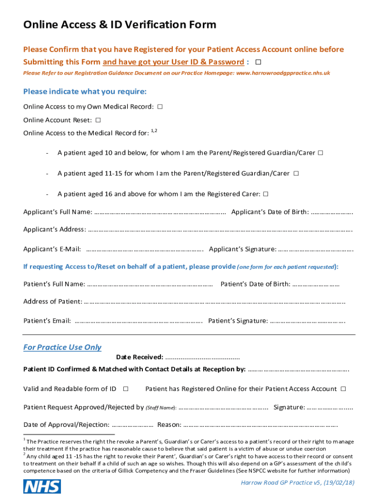 Get the free Online Access & ID Verification Form