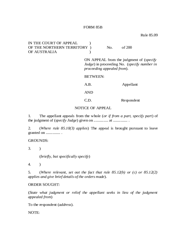 What is 85B - Supreme Court NT - supremecourt nt gov Form?