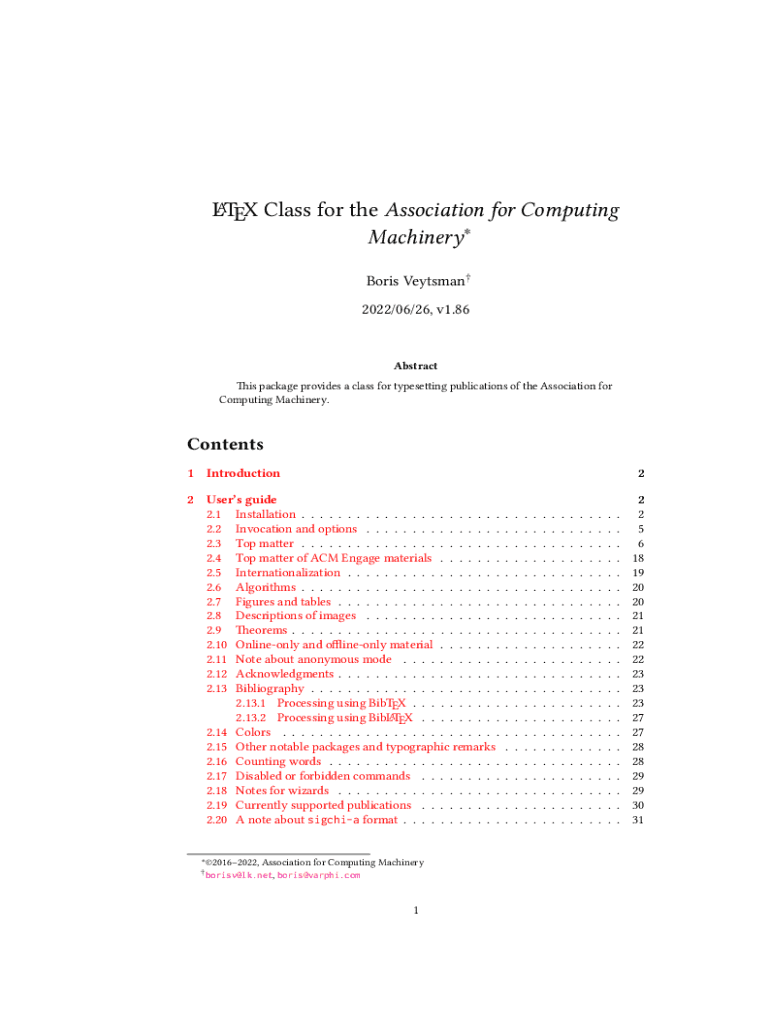 LATEX Class for the Association for Computing Machinery Boris Batsman 2022/06/26, v1.86Abstract This package provides a class for typesetting publications of the Association for Computing Machinery.