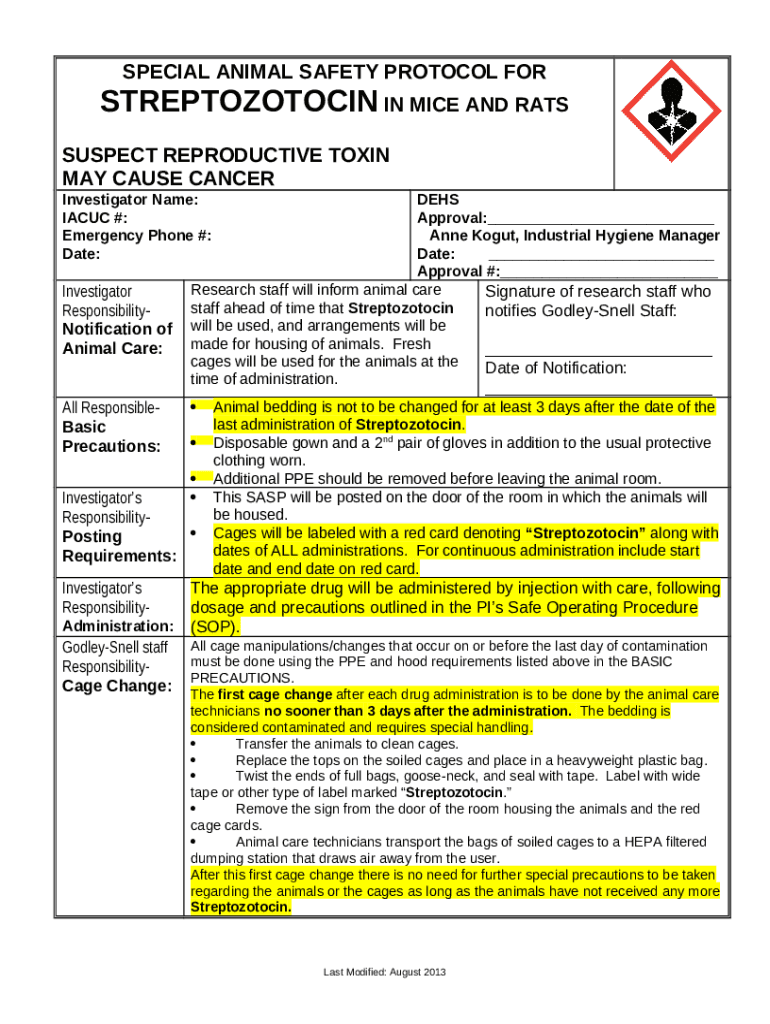 Template Special Animal Safety Protocol For Streptozotocin In Mice And Rats - media clemson instructions