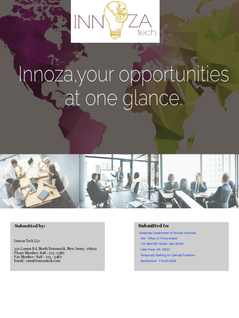 Submitted by:Submitted to: Arkansas Department of Human ServicesInnoza Tech LLC 310 Larson Rd, North Brunswick, New Jersey, 08902 Phone Number: 848 213 2380 Fax Number : 848 213 5480 Email : ram@innozatech.comAttn: