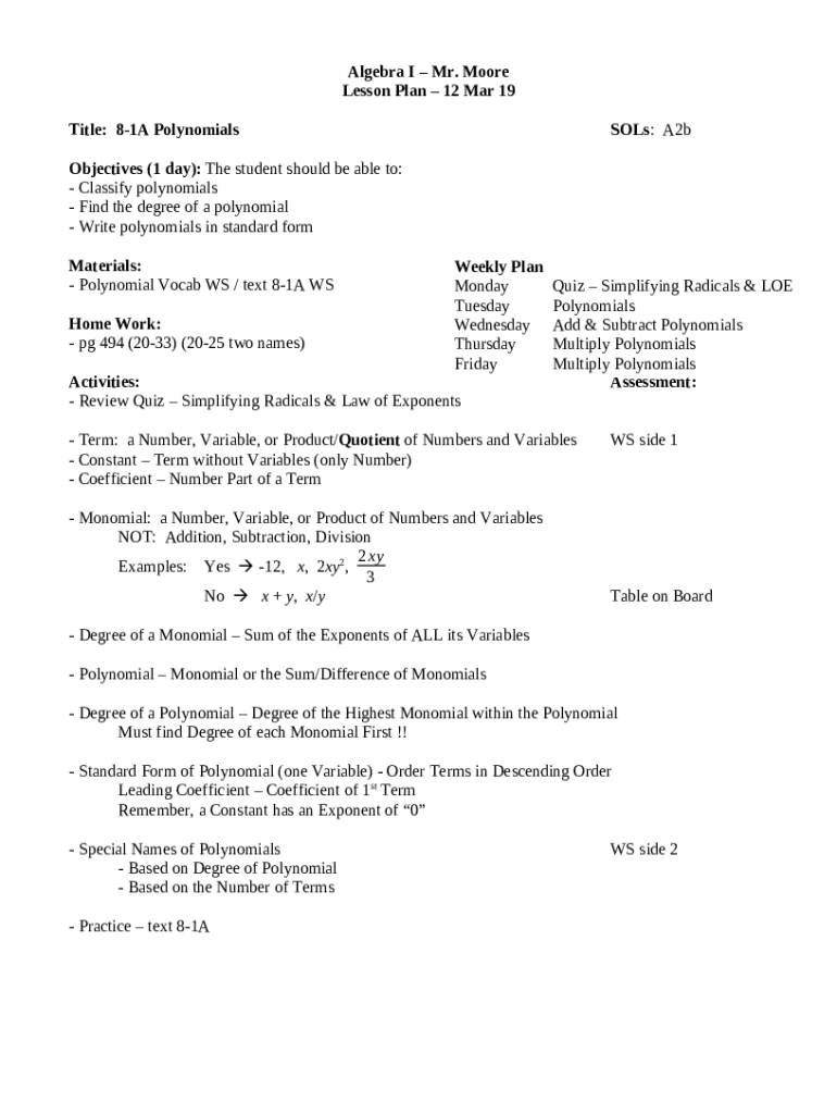 What is www.coursehero.comfile90766704Algebra Lesson Plan.edited.edited.docx - 1 Algebra Lesson ... Form?