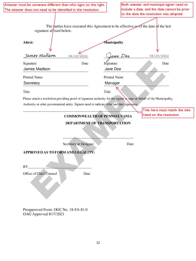 The attester does not need to be identified in the resolution. Both attester and municipal signer need to